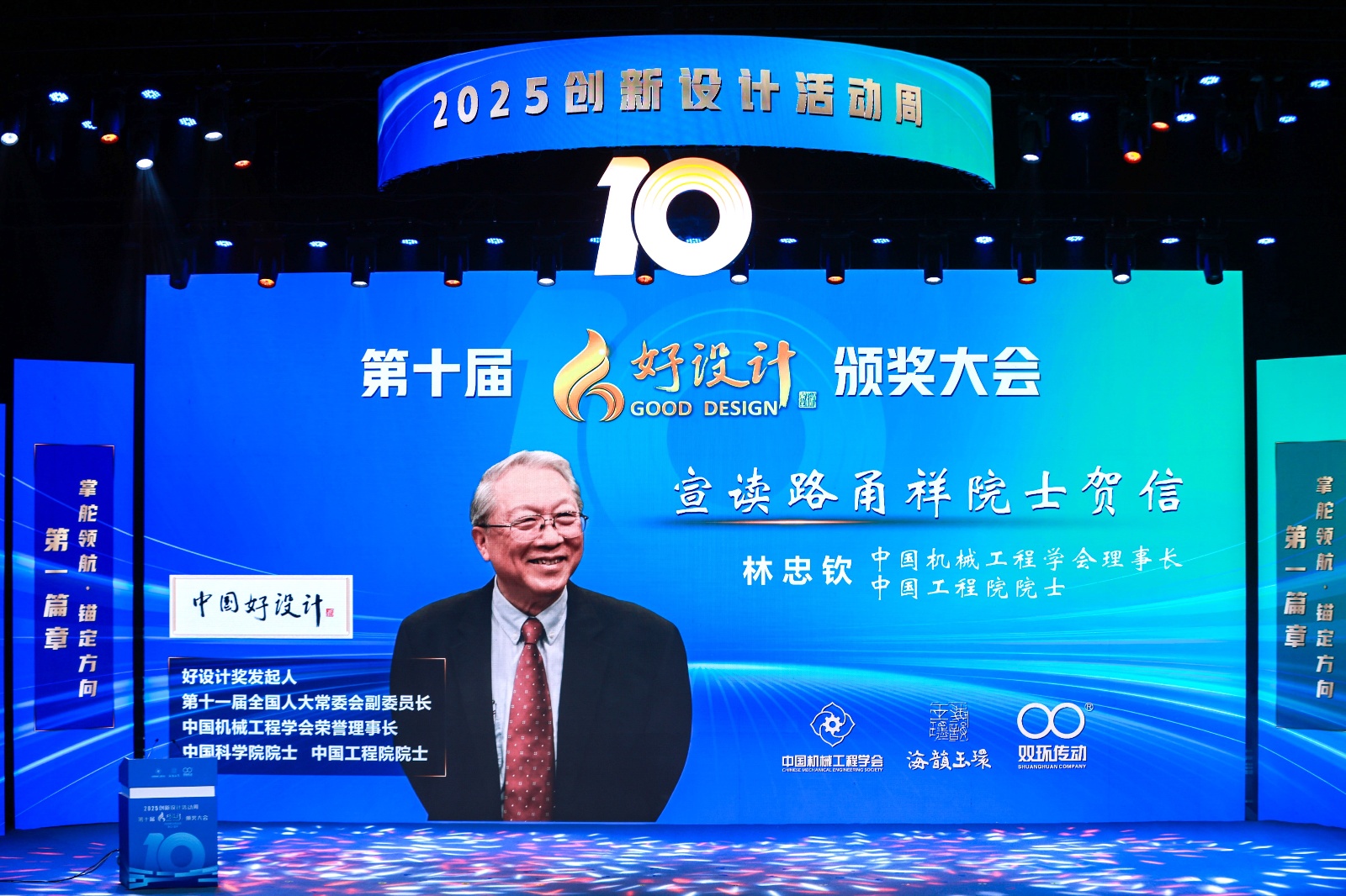在致辭中,林忠欽院士回顧了好設(shè)計獎十年發(fā)展歷程,指出“好設(shè)計”獎見證并推動了中國設(shè)計從模仿跟蹤到自主設(shè)計、原創(chuàng)設(shè)計的偉大跨越。2015年,在路甬祥院士、潘云鶴院士共同倡導(dǎo)下,中國機械工程學(xué)會正式設(shè)立“好設(shè)計”獎。如今,獎項已發(fā)展為制造業(yè)創(chuàng)新設(shè)計綜合性科技獎項,評選出大批代表中國設(shè)計崛起的典型項目,為深入推進創(chuàng)新驅(qū)動發(fā)展戰(zhàn)略發(fā)揮了重要作用。林忠欽院士表示,站在新十年的起點,浙江雙環(huán)傳動機械股份有限公司及吳長鴻董事長給予我們大力支持,更讓獎項在“中國制造”向“中國創(chuàng)造”跨越中注入新動能。期待好設(shè)計獎在未來十年繼續(xù)匯聚全國創(chuàng)新設(shè)計的智慧與力量,發(fā)掘更多彰顯中國智慧、代表中國名片的好設(shè)計,為全面建設(shè)社會主義現(xiàn)代化國家、實現(xiàn)中華民族的偉大復(fù)興作出新的更大貢獻。